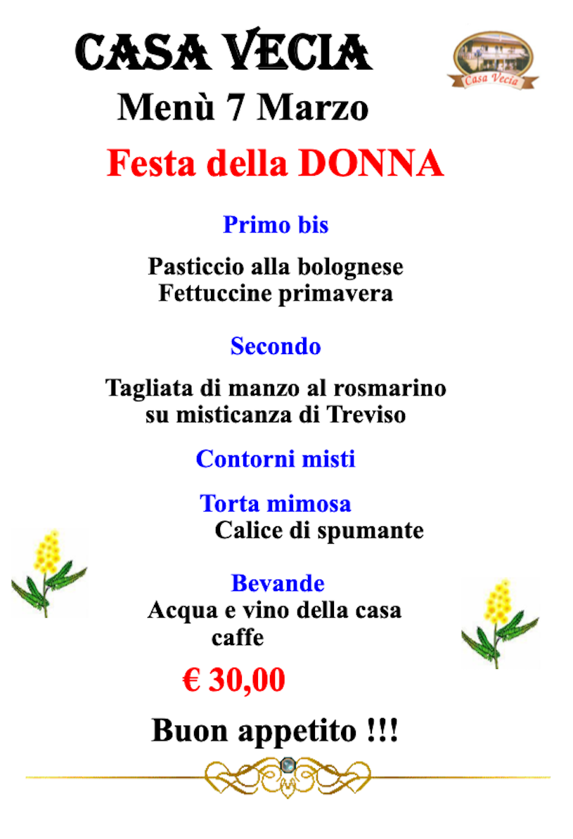 MENU FESTA DELLA DONNA 2026